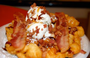 This year, they’ve brought in 11 new food vendors to the food building including the much talked about Bacon Nation, the raw vegan fare at VIE, deep-fried fudge and some delicious apple fritters at Big Apple Fritter.