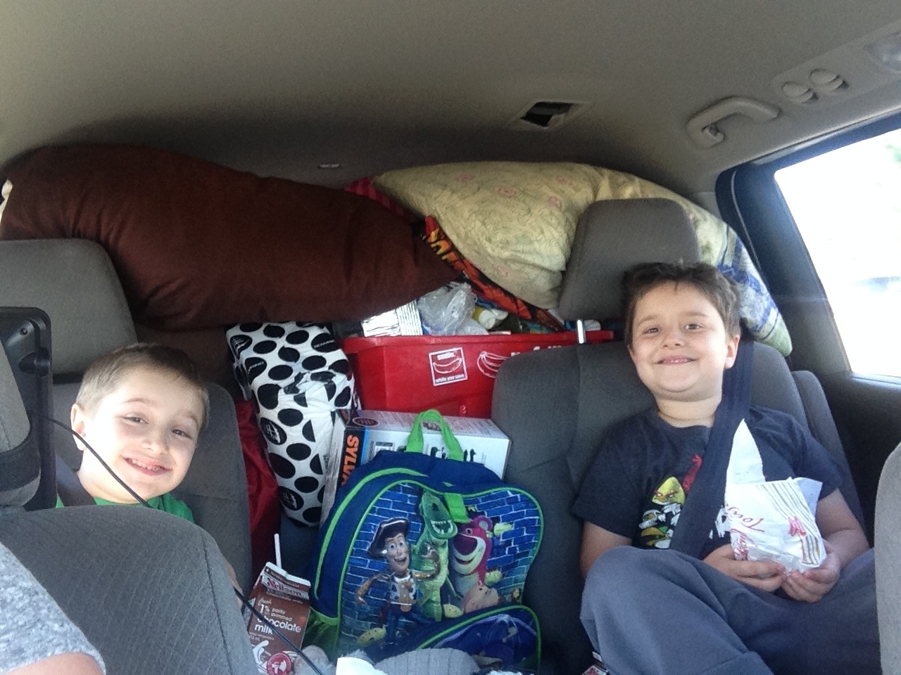 With the Pilot, we had to strap a roof top carrier to the top of the vehicle, and with the Odyssey there was no need for it. Not only did we fit everything in the cargo space of the Odyssey, but we also had a few extra things for our new addition to the family, our fur-baby Shadow, including his crate. My kids sat in the second row seating comfortably and not squished by all the things, like pillows and blankets, that we had to fit in-between them in previous years. They had room to have their own things easily accessible for the long drive. I remember first year we went camping, they had such a mountain of pillows and blankets in-between them that they couldn’t even see each other. It was hilarious.